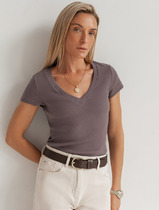 Vilatte Футболкаиз плотного трикотажа в рубчик с V-образным вырезом D49.129 кофе