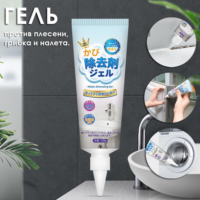 Универсальное средство против грибка и плесени, которое должно быть в каждом доме. Глубоко проникает, очищает и дезинфицирует уплотнительные резинки в стиральной машине и холодильнике, а также кафельные и сантехнические швы в ванной комнате, помогая предотвратить их повторное появление.Убивает до 99% бактерий и микробов.Не содержит вредных химикатов и токсичных веществ, что делает его безопасным для использования в жилых помещениях, особенно в тех, где есть дети и домашние животные., Продукт имеет форму геля, его активные вещества вступают в тесный контакт с пятнами плесени, полностью проникая в ее структуру, тем самым устраняя и предотвращая рост плесени.Гель не течет, поэтому его можно использовать на вертикальных поверхностях. Продукт удобен, прост в использовании и полностью справляется с задачей за одно, два нанесения. Не требует сложных приготовлений или дополнительных инструментов., Способ применения:Шаг 1. Протрите место, которое вам нужно очистить, сухой тканью.Шаг 2. Нанесите равномерным слоем толщиной около 3 мм. на места появления плесени и грибка.Шаг 3. Смойте водой примерно через 8-10 часов (Совет! Наносите перед сном и очищайте утром)Шаг 4. Протрите обработанную поверхность влажной тканью.Рекомендуется использовать резиновые перчатки. Беречь от детей!
