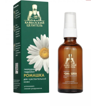 Гидролат ромашки «Кавказский Целитель» – это уникальное средство для ухода за чувствительной кожей, требующей особой заботы. В его составе вытяжка целебной тамбуканской грязи, которая направлена на глубокое питание, увлажнение клеток и удержание в них влаги, предупреждает истончение и пересыхание тканей. Ромашка лекарственная ценится за успокаивающее и ранозаживляющее свойства, способна выравнивать тон кожи и снимать раздражение, воспаление, предупреждать мелкие высыпания. Гиалуроновая кислота может поддержать состояние упругости и тонуса вашей дермы.