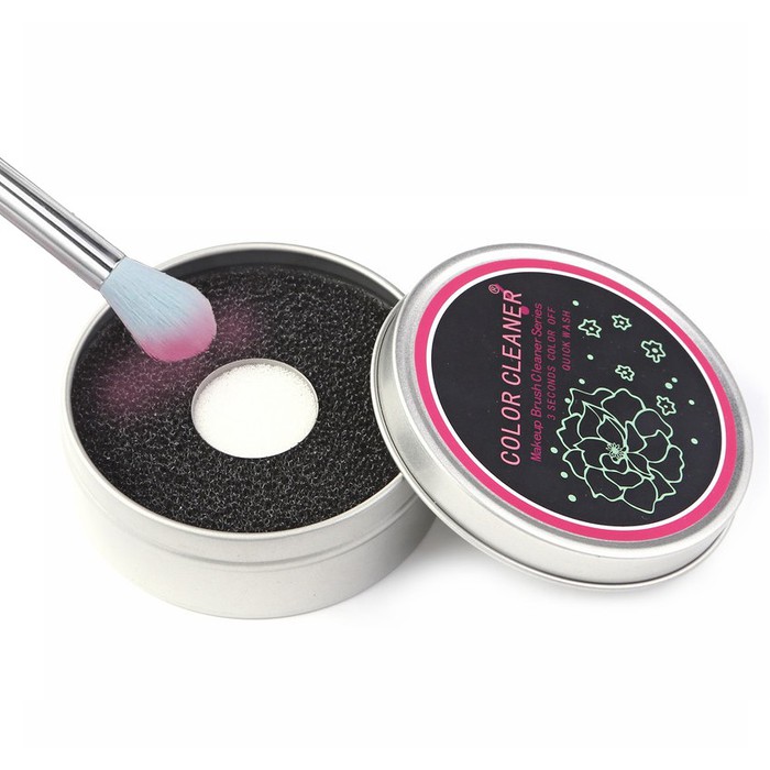 Губка для сухой чистки кистей для макияжа в металлической баночке
