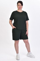 Темно-синий халат из кулирки с полосатыми декоративными элементами и принтом. Две вариации по цвету — розовые или голубые тона рисунка, банта и швов. Справа карман, слева принт. Длина чуть выше колена. Размерный ряд от 42 до 54. Имеется возможность розничной покупки данного товара.