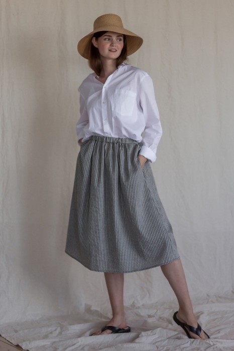 Мы создали эту юбку для тех, кто не забывает возвращаться к природным истокам, находясь в городской суете. Довольно сложная фактура материала легко дополнила обычный крой с резинкой на талии.