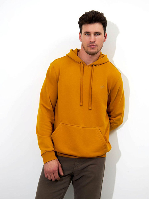 Классическая толстовка "Худи" выполнена из хлопкового полотна с добавлением полиэстера. Мягкая и приятная на ощупь, обладает хорошей гигроскопичностью,  позволяет коже дышать. Модель с капюшоном и длинными рукавами не сковывает движений,  обеспечивая комфорт. Объем капюшона регулируется при помощи шнура. Манжеты рукавов и низ толстовки оснащены эластичными резинками. Спереди толстовка дополнена карманом "кенгуру".