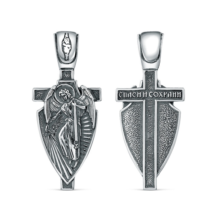 Совместные закупки Екатеринбург Ювелирные украшения и бижутерия Подвески — Икона-Крест из чернёного серебра - Ангел Хранитель, 3,5 см 925 пробы К3-362ч