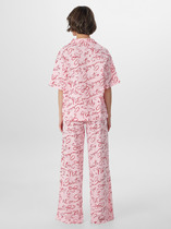 Пижама с майкой и шортами. Сшита из дышащего и мягкого трикотажа. Майка в лавандовом оттенке с аккуратным накладным карманом украшена вышивкой в виде кактусов. Горловина обработана мягкой тесьмой. Шорты свободного кроя с принтом и широкой эластичной резинкой.