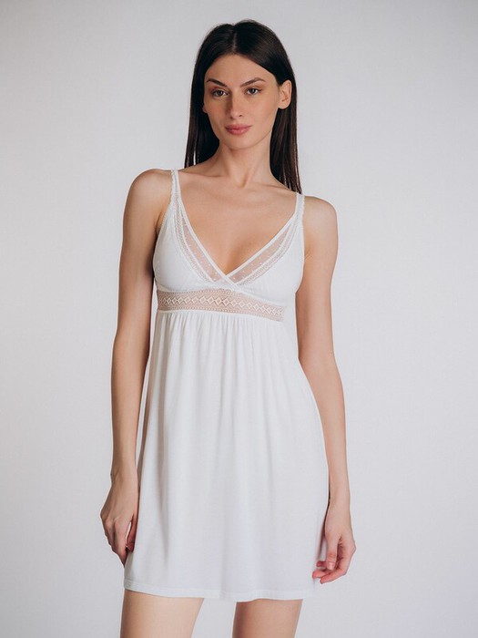 Женская сорочка Indefini 5019SDD выполнена из легкого воздушного материала белого цвета, украшенного изысканным кружевом.