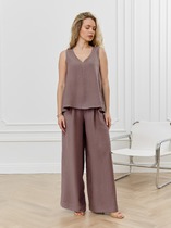 Брюки прямого свободного кроя имеют на талии мягкую эластичную широкую резинку.