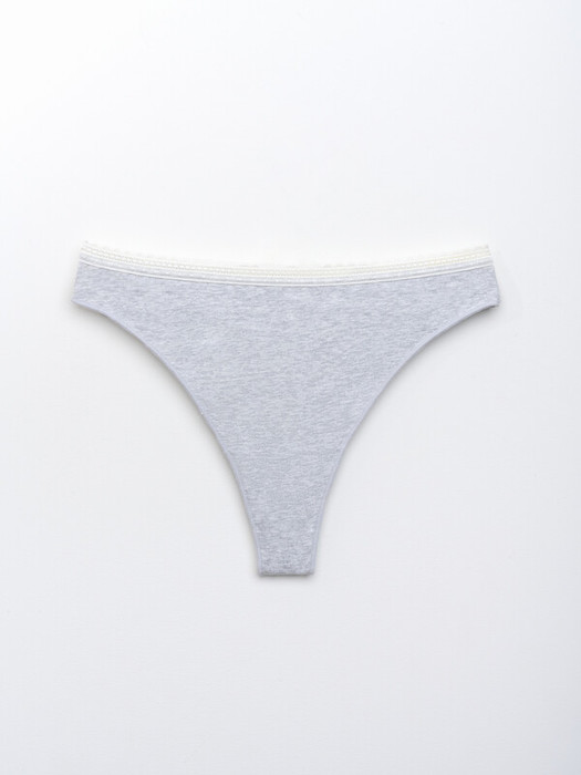 Стринги из мягкого хлопкового трикотажа — прекрасный выбор для ценителей женственного нижнего белья. Кружевная окантовка с фестонами и благородный меланжево-серый оттенок создают аккуратный, сдержанный, но очень женственный образ. Открытая линия ягодиц подчеркивает силуэт. Мягкая резинка не оставляет следов на коже, а небольшое количество эластана в составе делает белье долговечным и тянущимся. Материал подходит даже для чувствительной кожи.