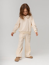 Костюм для девочек дошкольного и младшего школьного возраста. Костюм состоит из толстовки и штанов. Костюм из трикотажного эластичного хлопкового однотонного полотна футер . Толстовка с капюшоном, с длинным рукавом на манжете и поясе из основного полотна. На переде толстовки расположен карман-кенгуру. Штаны с боковыми карманами, на манжетах и поясе из основного полотна.