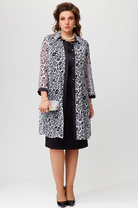 Кардиган нарядный ""Димия"" прямого силуэта, с застежкой на петли и пуговицы. Край борта обработан планкой. Воротник отложной со стойкой рубашечного типа. Рукав одношовный, втачной. Низ рукава обработан атласной планкой. По боковым швам разрезы. Низ изделия обработан швом в подгибку закрытым срезом.