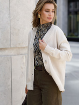 Плотный вязаный кардиган прямого силуэта длиной выше линии колена с центральной линией борта без застёжки. Линия плеча спущена. Рукав рубашечного типа прямого покроя стандартной длины. Вырез горловины V-образный углублённый без воротника.