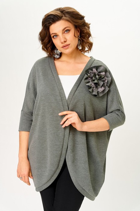 Кардиган женский с рукавом летучая мышь, свободного кроя, без застежки. По переду и горловине спинки притачная планка. Низ рукава с манжетой.