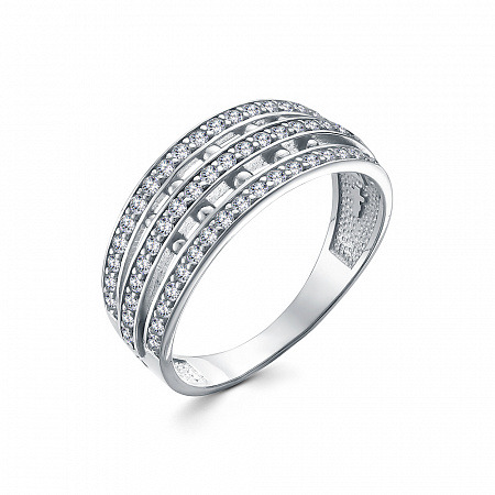 Кольцо (Господи Спаси и Сохрани) из серебра родированное литьё с фианитом
