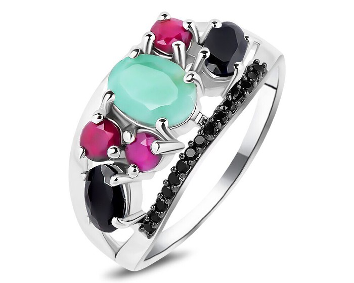 Кольцо, арт.658467 Серебро Серебро 925, р. 17.5, 3,25 гр., изумруд берилл , рубин корунд , сапфир корунд , шпинель