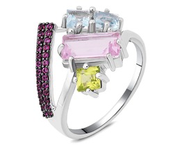 Кольцо, морганит , перидот , топаз , нанорубин, Фебо