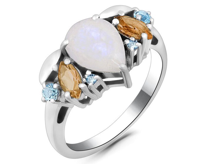 Кольцо, лунный камень , топаз , цитрин , нанотопаз, Алия