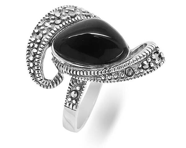 Вес: 5.08 г Вставка: Марказит Дизайн: Капля Цвет камня: Черный Производство: Таиланд Покрытие: Оксидирование Размер колец: 1818.5192020.521 Количество: 14Кольцо, арт.656876 Серебро Серебро 875, р. 20, 5,08 гр., марказит , оникс