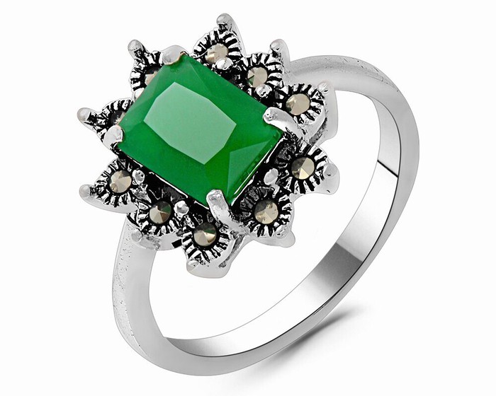 Кольцо, марказит , синт.изумруд, SL-AGA1631