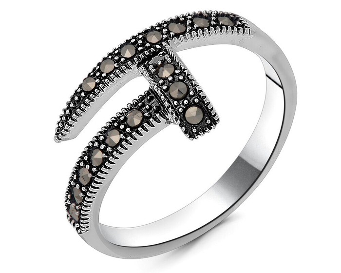 Вес: 3.87 г Вставка: Марказит Цвет камня: Серый Производство: Таиланд Покрытие: Оксидирование Размер колец: 17.51818.51920 Количество: 10Кольцо, арт.656424 Серебро Серебро 875, р. 19, 3,87 гр., марказит