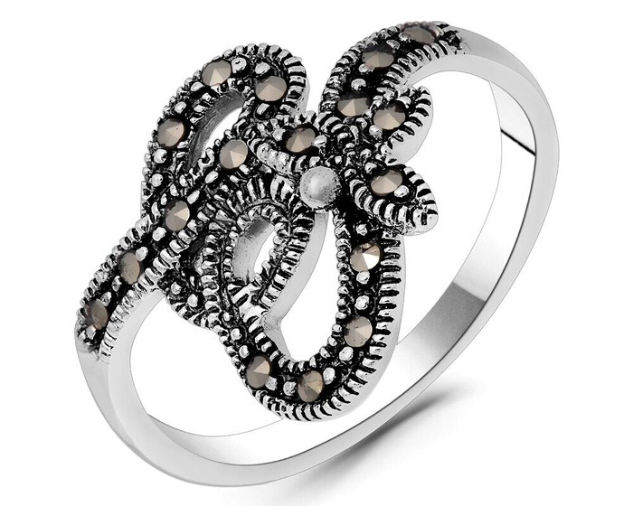 Вес: 3.44 г Вставка: Марказит Цвет камня: Серый Производство: Таиланд Покрытие: Оксидирование Размер колец: 1717.51818.51919.5 Количество: 12Кольцо, арт.656410 Серебро Серебро 875, р. 19, 3,44 гр., марказит