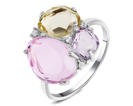 Кольцо, аметист , лимонный топаз , морганит, Вивальди