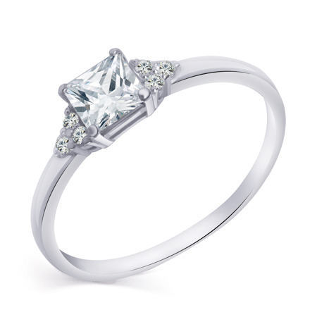 Кольцо с фианитом родированное серебро 925*