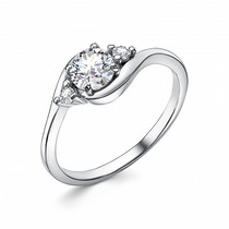 Кольцо с фианитом родированное серебро 925*