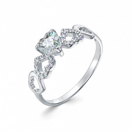 Кольцо с фианитом родированное серебро 925*