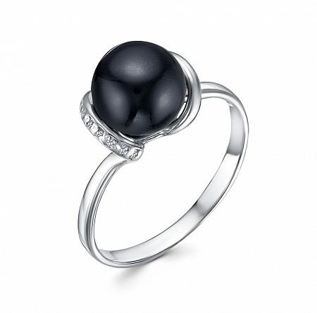 Кольцо с искуственным жемчугом родированное серебро 925*