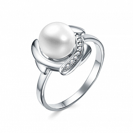Кольцо с иск.жемчугом родированное серебро 925*