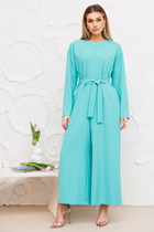 Женственный комбинезон полуприлегающего силуэта. Манжеты рукавов, мини-стойка выполнены из ткани компаньона - кашкорсе в цвет.