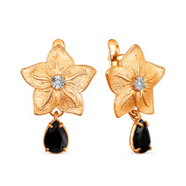 Серьги из золочёного серебра с бриллиантами, чёрной шпинелью и родированием 925