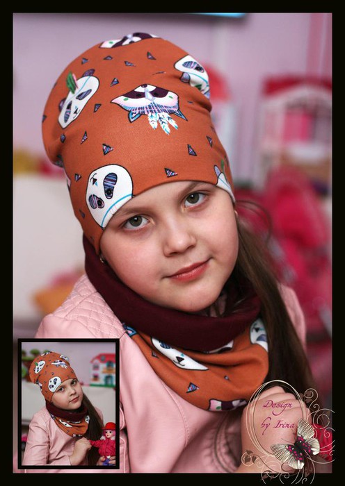 Совместные закупки Екатеринбург Детские аксессуары Шапки — Комплект для девочки хлопковый ЕНОТЫ (кирп)