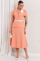 Классические брюки из плотной ткани. Пояс на высокой посадке. На передних половинках расположены под наклоном нефункциональные прорезные карманы в рамку. На задних половинках расположены вытачки. Пояс со шлевками. Застежка брюк – гульфик на молнии, по поясу крючок и петля.