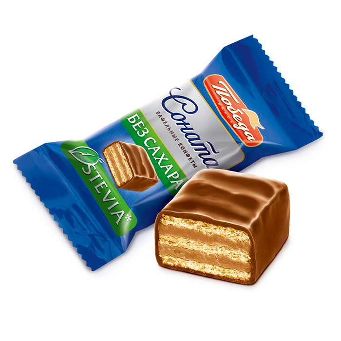 Шоколадные конфеты с ореховыми начинками называются «пралине» в честь французского герцога Сезара дю Плесси Пралин. Рецепт был создан в 18 веке, и сегодня его знают во всем мире. Конфета "Соната" – вкуснейший сливочный шоколад, нежная начинка пралине и воздушная хрустящая вафля. Ваш рецепт хорошего настроения теперь и без сахара, на натуральном сахарозаменителе стевиолгликозиде. Стевиолгликозид – очищенный экстракт растения стевии (Stevia rebaudiana), который придает листьям сладкий вкус. Растение стевия родом из Южной Америки. Это уникальный природный сахарозаменитель, не имеющий аналогов, благодаря особенной сладости и натуральному происхождению.