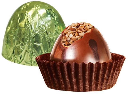 Конфета куполообразной формы: под нежнейшей оболочкой молочного шоколада щедрая порция дробленого фундука, утопающего в ореховом пралине.Делю по 0,5кг, ряд 2.