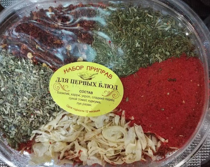 состав: томат, кондари, сладкий перец, шафран, базилик, листья шамбалы