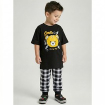 Костюм для мальчика, состоящий из футболки и удлинённых шорт, не стесняющих движения. На футболке современный принт. Костюм предназначен для повседневного использования.