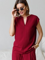 Костюм женский из кулирного полотна состоит из кофты и брюк. Кофта прямого силуэта. Горловина круглая. Рукав длинный, втачной на манжете. Низ изделия на поясе. На полочке принт в виде цветов. Брюки прямые, в боковых швах есть карманы. Верх на поясе с резинкой. Низ обработан на плоскошовной машине.