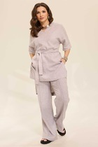 Темный костюм из кулирки майка + шорты. Майка темная, сбоку принт в виде узора их огурцов и растительных мотивов, планка с декоративными кнопками. Аналогичный дизайн шорт, длина чуть выше середины бедра. Размеры от 40 до 52. Есть возможность розничного приобретения товара.