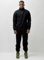 Костюм мужской из футер с начесом. Толстовка с длинными рукавами на манжете, на рукавах вставки из отделочного полотна, на полочке печать. Брюки на манжетах, лампасы из отделочного полотна
