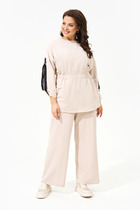 Костюм женский. Рукав короткий на манжете, кант в рельефе, горловина и низ-подгибка плоскошовка с раскладчиком. Бриджи цельнокроеные на подгибке