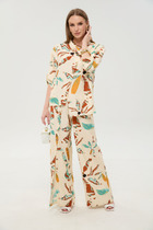 Молодежный костюм из кулирки - кофта и бриджи. Кофта свободного покроя с печатью, 3/4 рукав с манжетом, горловина окантована, низ затягивается на шнурок. Бриджи с манжетами