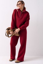Комплект состоит из туники и брюк. Брюки полуприлегающие, длиной 7/8, на эластичном поясе, с карманами. Туника прямого силуэта, с фигурной горловиной, с удлиненной спинкой. Рукав короткий, с отворотом.