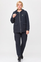Костюм женский джемпер и брюки из трикотажа. Брюки женские прямого силуэта, пояс на резинке.Боковые карманы на молниях.По низу брюк обработаны разрезы на молниях.Джемпер прямого кроя с дизайнерской печатью"булавки", полочка с накладным карманом.Джемпер с притачными рукавами и манжетами.