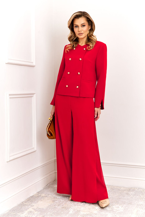 Стильный и суперэффектный костюм, состоит из жакета и брюк. Жакет полуприлегающего силуэта, выполнен из премиальной ткани Зара с добавлением вискозы. Жакет двубортный, по переду с застежкой на металлические золотые пуговицы и V-образным вырезом горловины, что придает модели особый шарм и нарядность! Жакет полностью на премиальной подкладке GRAND. Рукав жакета втачной, полной длины, с небольшим разрезом по низу! Брюки — это отдельный вид искусства! Брюки прямого силуэта, выполнены из ткани Зара с добавлением вискозы, верхний слой брюк выполнен из летящего шифона, что придает модели особый стиль и нарядность. Брюки сбоку с застежкой на потайную молнию и пуговицы. Модель идеально украсит праздничный образ, но в тоже время прекрасно подойдет для ежедневной носки!