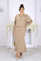 Комплект женский с современным взглядом на классику, состоящий из жакета и юбки. Жакет, выполненный в светло-молочном цвете с отделкой в актуальном дизайне, гусиная лапка. Стиль «шанель», создает роскошный, утонченный образ. Жакет на подкладке с застежкой на петли и пуговицы, горловина округлой формы, с нагрудными вытачками. По переду настрочные листочки и карманы с застёжкой на петлю и пуговицу. Спинка цельная, без особенностей. Рукав втачной, одношовный, длинный с мандетой по низу. Юбка слегка зауженная к низу с поясом. В поясе по бокам для максимального комфорта предусмотрена резинка.  Застёжка по спинке на молнию в среднем шве. В среднем шве по низу отлетная шлица. Юбка на подкладке. Костюм особенно хорошо тем, что верх и низ можно носить по отдельности  создовая новые образы. Длина жакета 54 см, длина рукава 61 см, длина юбки 68см.
