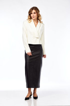 Костюм в стиле спорт-шик сочетающий в себе женственность и комфорт. Сочетание двух тканей трикотажного полотна и костюмной ткани добавляет оригинальность. Жакет со спущеным плечем и декорирован печатью по левой части переда, воротник пиджачного типа. По пинии плеча паты с полукольцом. Рукав втачной одношовный с манжетой по низу. Спинка с кокеткой и отлетной планкой. Понизу довяз и регулируемая кулиса. Брюки, слегка зауженные к низу, свободного силуэта. По переду вблизи боковых швов карманы. Для максимально комфортной посадки по поясу вставлена эластичная резинка.