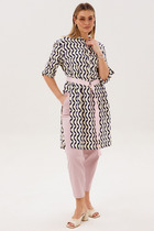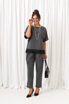 Костюм выделяется нежным оттенком кардигана, который контрастирует с джинсами графитового цвета брюк, создавая баланс между мягкостью и строгостью. Дизайн вдохновлен минималистичным стилем с акцентом на контрастные швы и аккуратные детали, такие как нашивка и пуговицы. Кардиган свободного кроя с глубоким V-образным вырезом и застежкой на крупные декоративные пуговицы. Контрастная отделка кантом по краям и по швам. Два накладные кармана спереди и контрастная нашивка на кармане для акцента придают образу лёгкости и расслабленности. Длинные рукава с эластичными манжетами обеспечивают удобную посадку.Рукав на спущенной плойме. Брюки прямого покроя с боковыми карманами вблизи боковых швов, подчёркивают лёгкость и свободу движения. Для максимально комфортной посадки по поясу вставлена эластичная резинка по спинке и бокам. Тонкая прострочка в цвет превращают костюм в стильный акцент гардероба, который будет уместен как в деловой среде, так и в повседневной жизни.