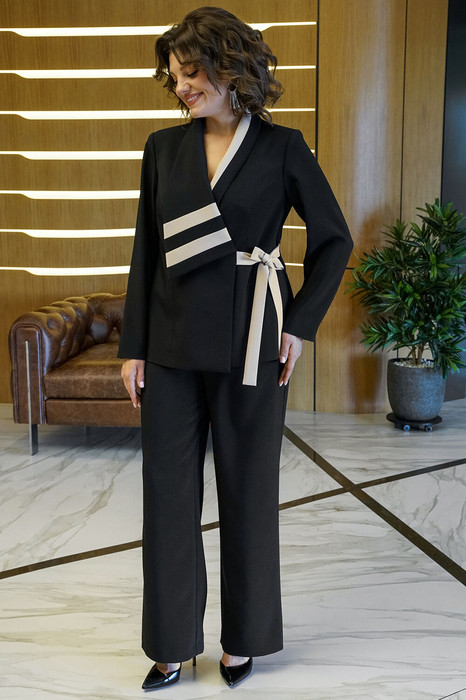 Рукава втачные, длинные, двухшовные. Воротник комбинированный левый «шалька», правый «апаш» с отделочными деталями из отделочной ткани.